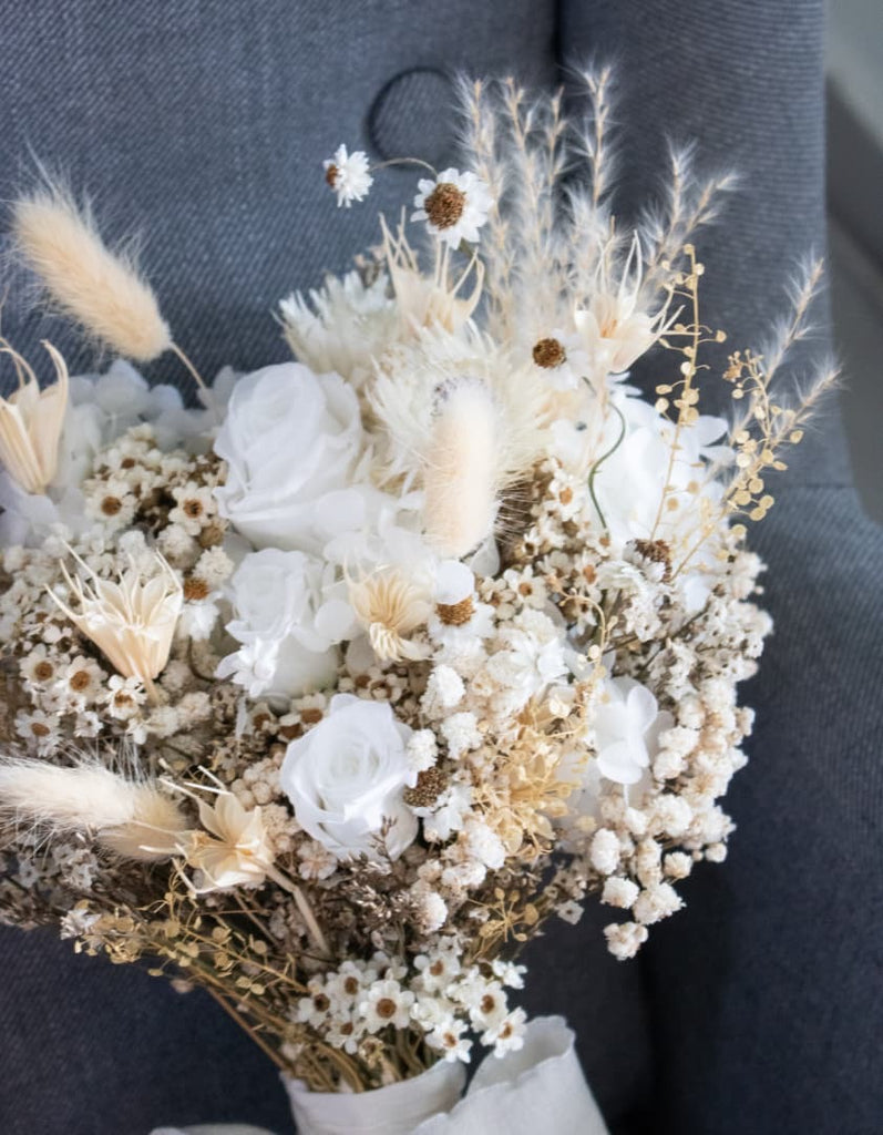 Dreamy Inspired Flower Arrangement (mix of preserved, dry, fresh)